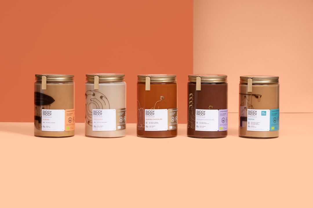 Buddy Buddy是一個位于比利時的食品品牌,他們的產品以堅果醬為主,還有啤酒和牛奶。品牌文字用的兩個B重疊組成,這個概念是向你能擁有的最好的伙伴致敬,通過重復的插畫圖案和標志字體表現,同時也展現出Buddy Buddy美味食品分享的不同時刻,充滿幽默感和青春氣息。